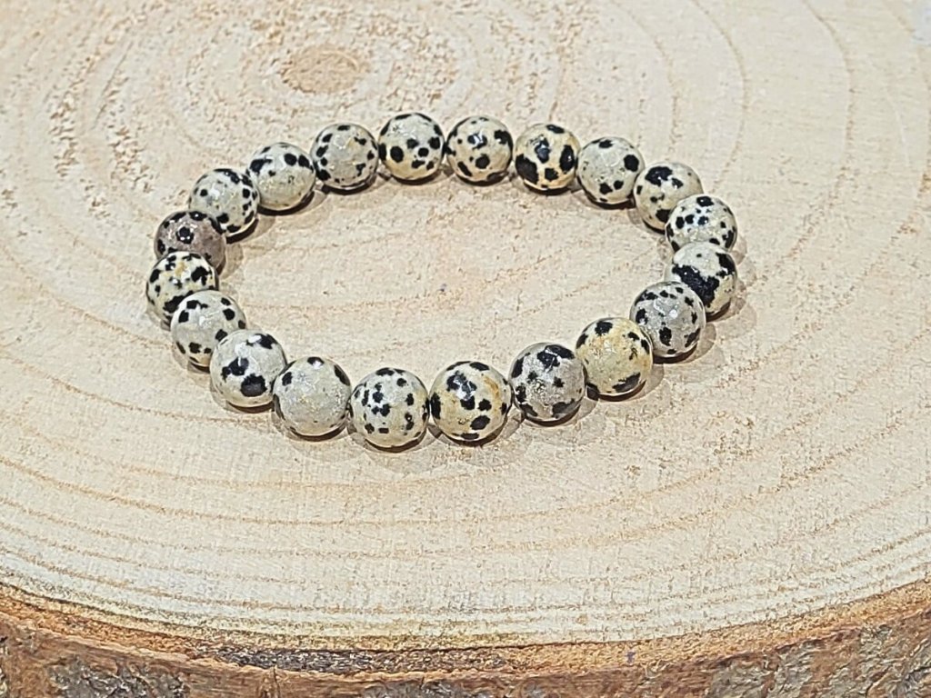 ○ Křišťál – zesiluje čistotu a energii jaspisu dalmatinu, pomáhá lépe se propojit s intuicí.