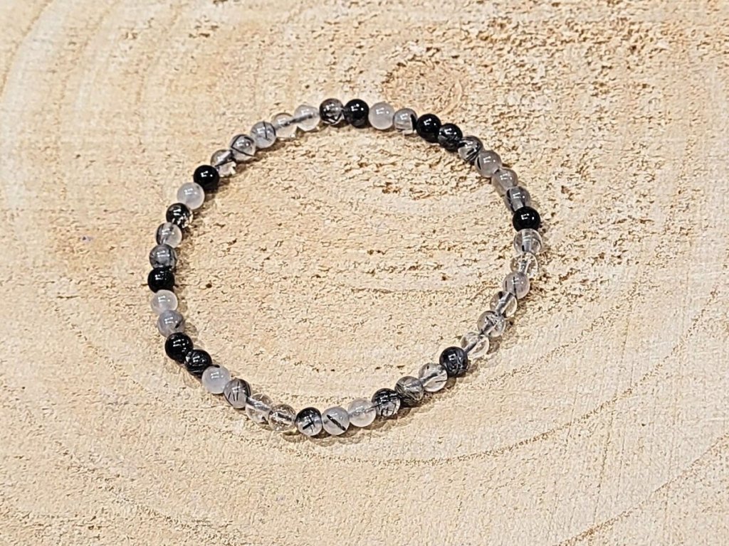 Náramek z křišťálu a černého turmalínu spojuje sílu dvou mocných kamenů. Křišťál, nejuniverzálnější kámen vůbec, čistí mysl, přináší jasnost a pomáhá ti lépe se soustředit. Navíc zesiluje účinky ostatních kamenů, takže v kombinaci s turmalínem získáš silný ochranný štít proti negativním energiím. Turmalín tě zároveň uzemní a pomůže ti udržet vnitřní klid i během náročných situací. Díky této kombinaci budeš lépe zvládat stres, najdeš rovnováhu a získáš podporu pro svou mentální i fyzickou pohodu.