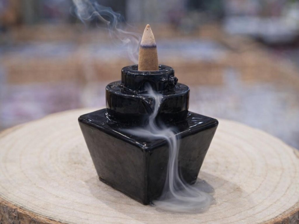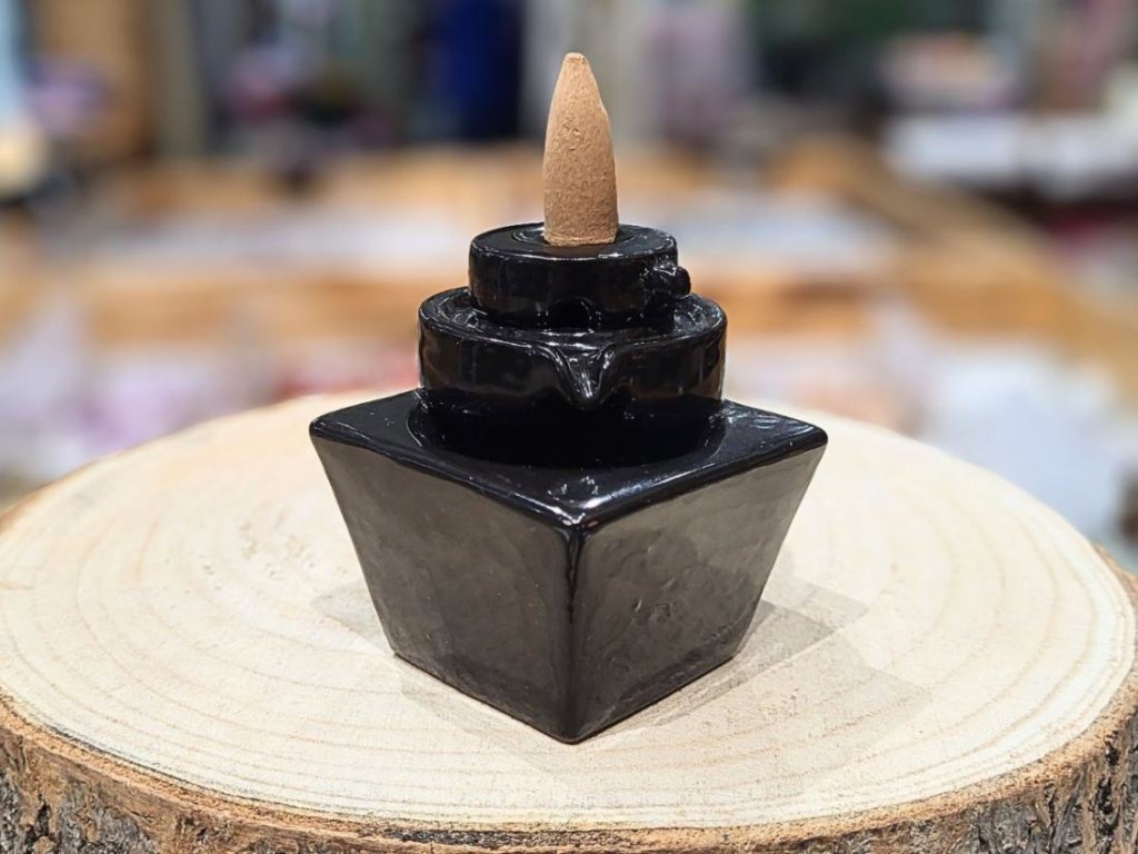 Tento keramický backflow stojánek nechá dým plynout dolů v jemných kaskádách. Kouř z vonného kužele nestoupá vzhůru, ale tiše klesá po jednotlivých stupních fontány a vytváří klidný efekt vodopádu. Je to malý detail, který dokáže změnit atmosféru místnosti – ať už si chceš vytvořit prostor pro soustředění, odpočinek nebo jen chvíli ticha pro sebe.