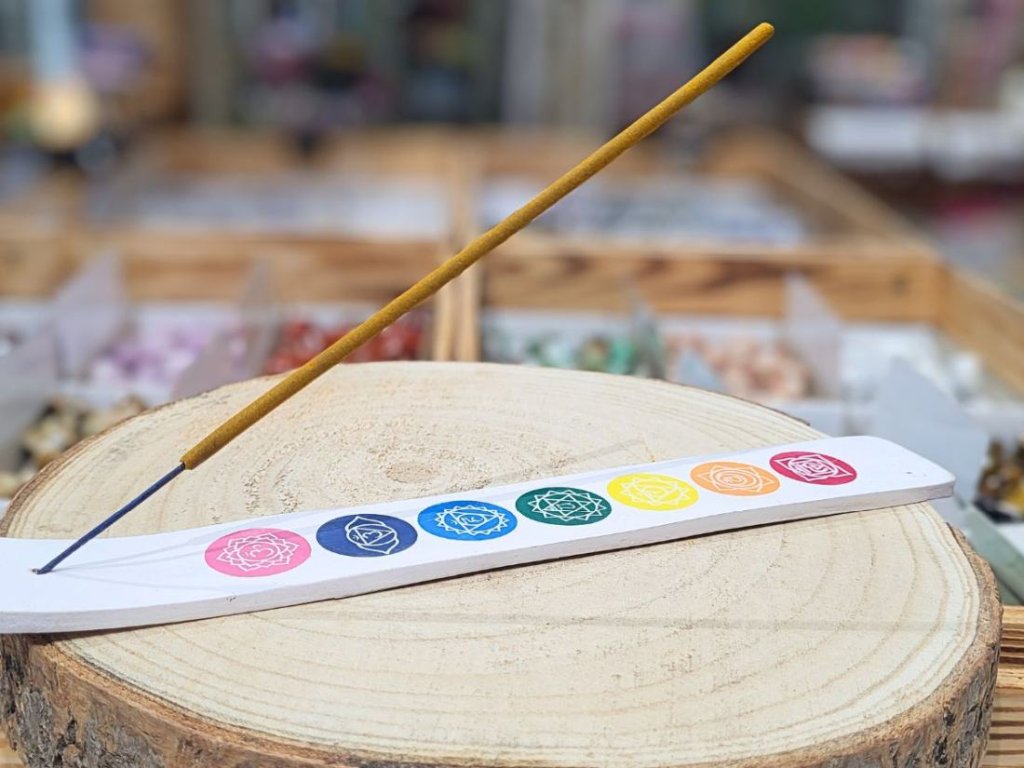 Někdy stačí jen zapálit tyčinku, na chvíli zpomalit a nechat vůni udělat svou práci. Tenhle bílý stojan na vonné tyčinky s čakrovým motivem je jednoduchý a čistý doplněk, který se hodí do každého prostoru – domů, do pracovního koutku i do místa, kde medituješ nebo cvičíš jógu.