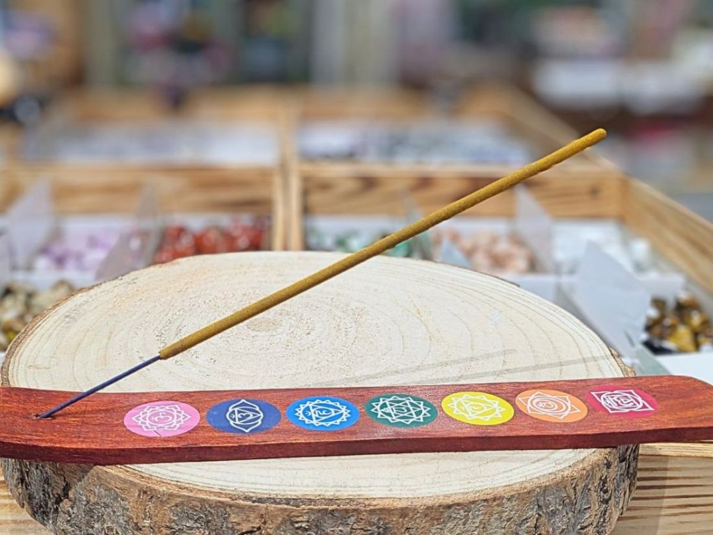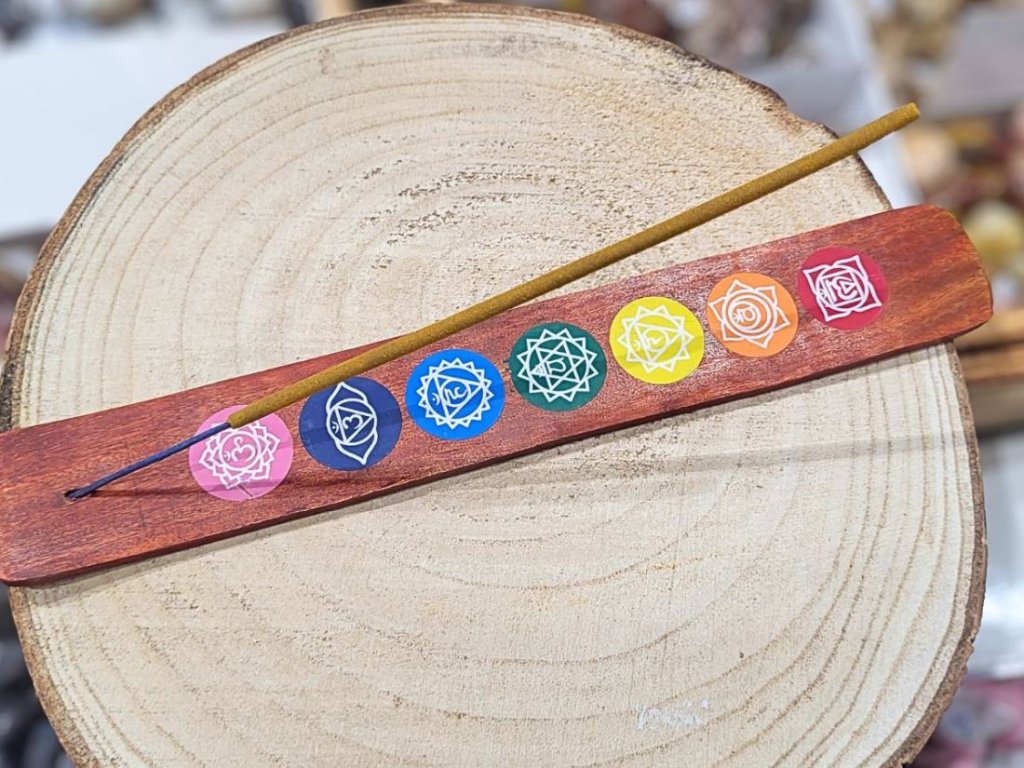Stojan na tyčinky s čakrovým motivem pro každý den