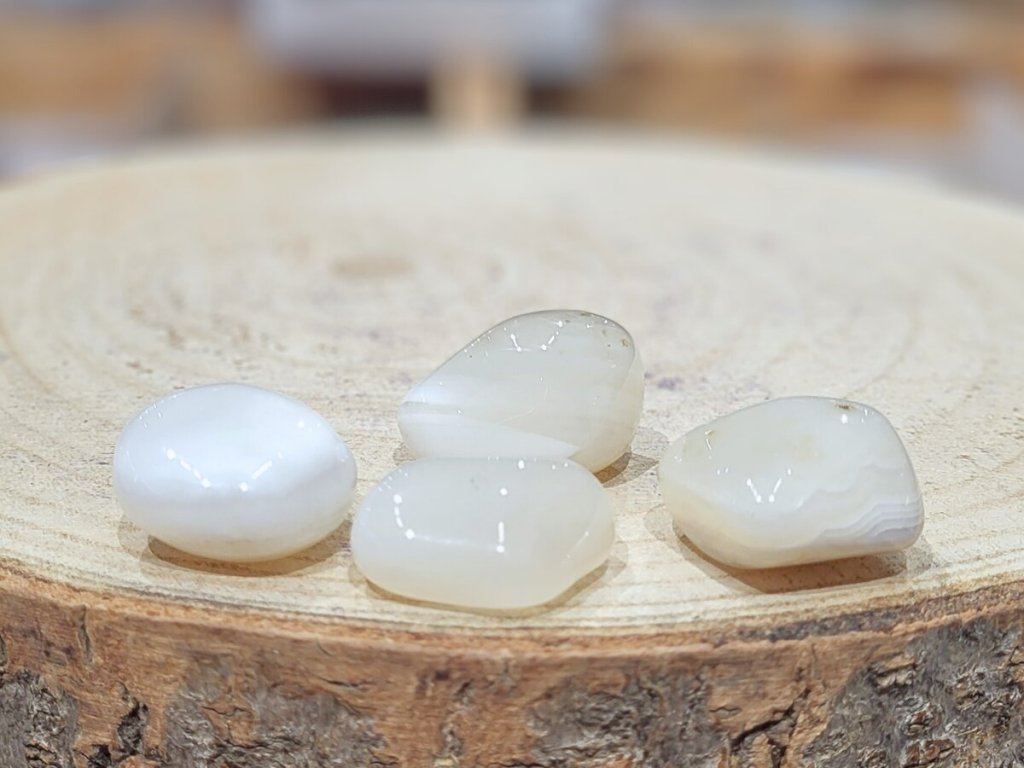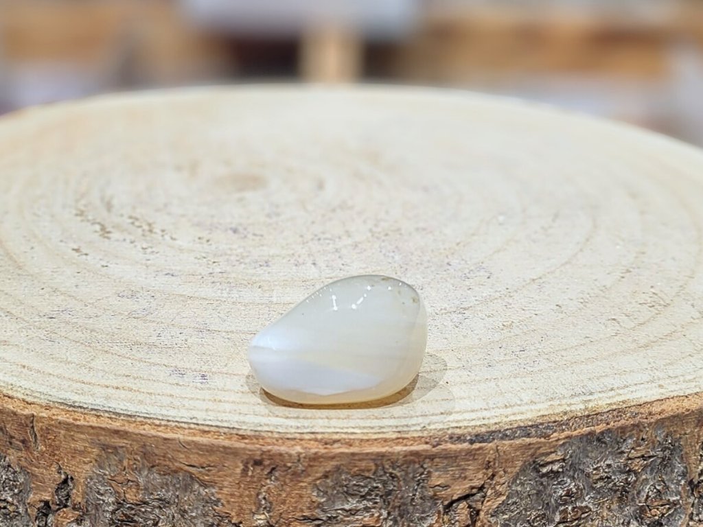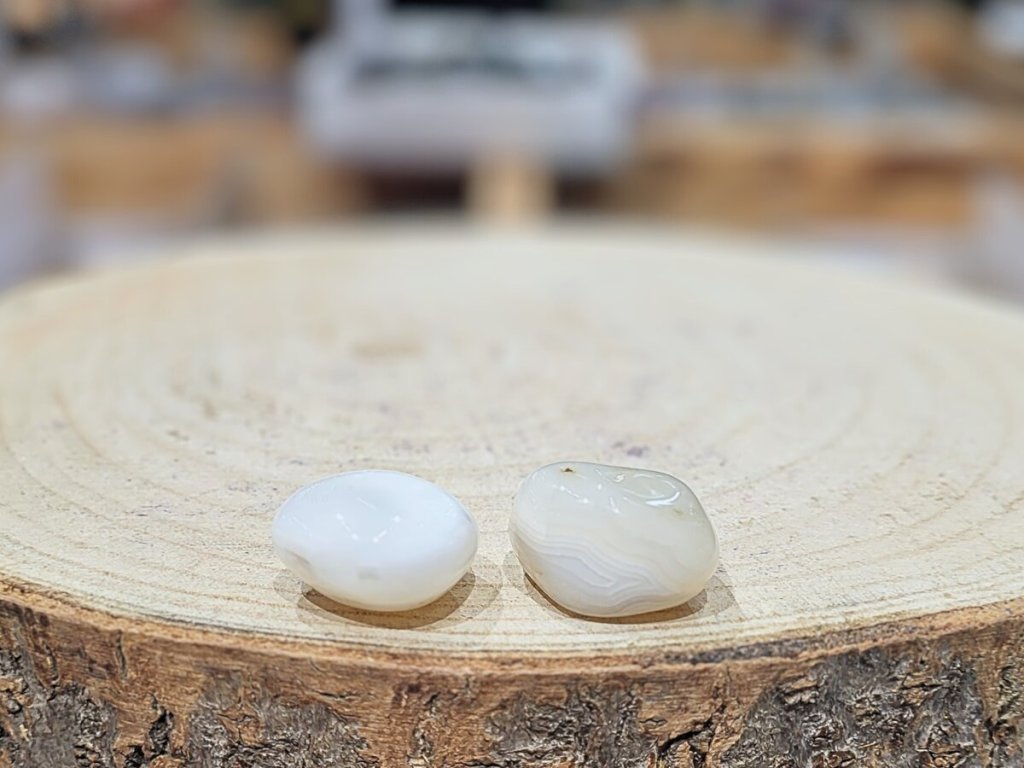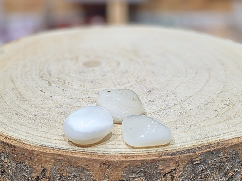 Achát bílý vzniká pomalým ukládáním vrstev oxidu křemičitého v dutinách vulkanických hornin. Díky tomuto procesu, který trvá tisíce až miliony let, má svou typickou mléčnou barvu a jemně pruhovanou strukturu. Vyskytuje se na různých místech světa - od Brazílie přes Indii až po oblasti Afriky - a každý kousek nese unikátní kresbu i energii své domoviny.