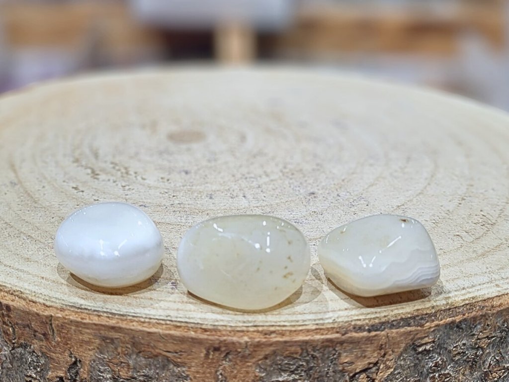 Achát bílý se krásně doplňuje s minerály, které zvýrazňují jeho jemnou, očistnou energii. Křišťál posiluje jeho účinky a čistí prostor kolem tebe. Měsíční kámen podporuje klidnou a intuitivní energii, takže společně navozují harmonii a vnitřní vyrovnanost. A pokud ho zkombinuješ s ametystem, posílíš jeho schopnost utišit mysl a propojit se s hlubším vnitřním klidem.