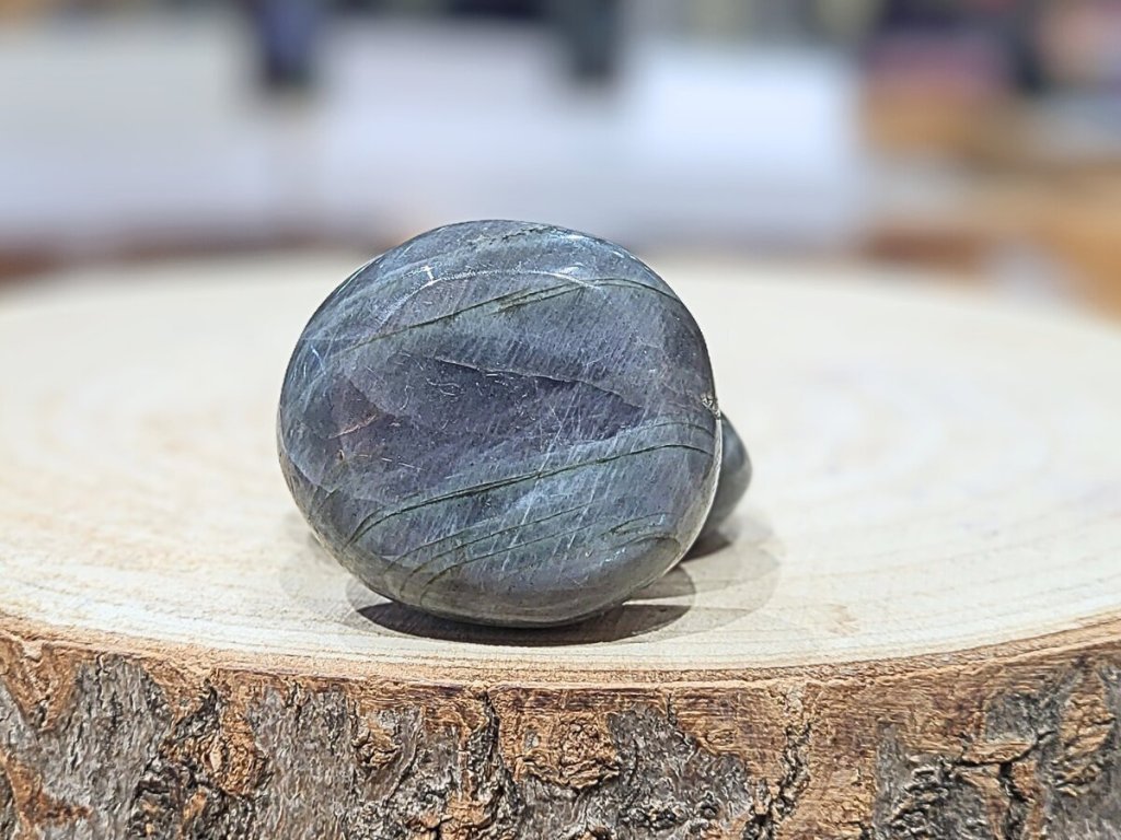 Labradorit ve formě větší tromlované placky působí jako malý kousek magie, který si můžeš vzít kamkoli s sebou. Jeho šedé tóny ožívají modrými a zelenými záblesky – každý pohyb ruky, každý dopad světla odhalí jinou tvář kamene. Díky hladkému povrchu se skvěle drží v dlani, uklidňuje, uzemňuje a přináší pocit bezpečného prostoru. Je to minerál, který podporuje intuici, chrání tvou energii a dodává vnitřní klid vždy, když ho potřebuješ.