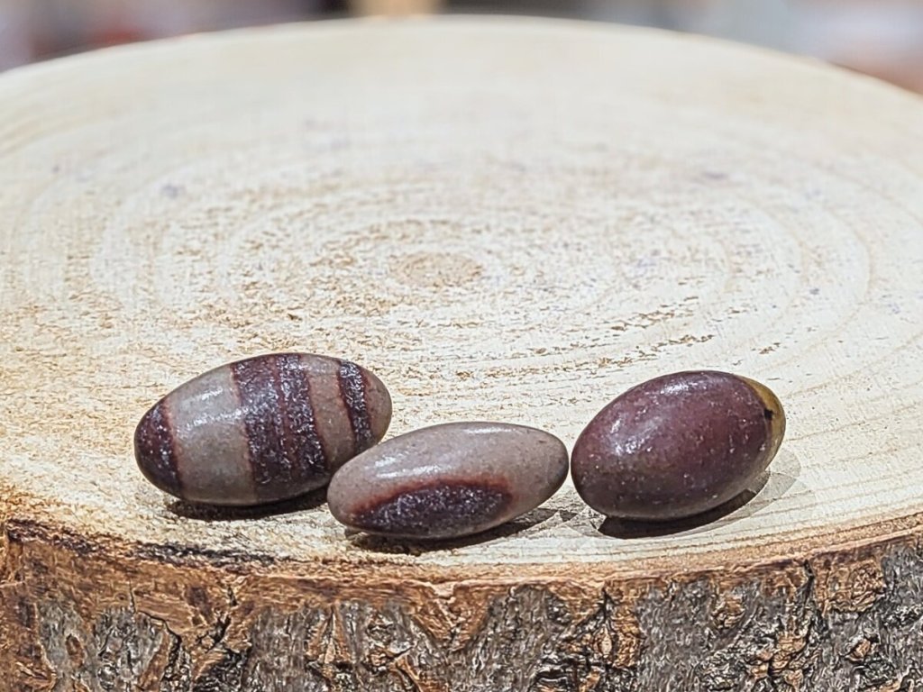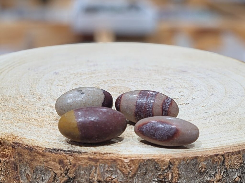 Přirozený, oválný tvar kamene vzniká dlouhodobým pohybem vody, písku a času, který postupně obrušuje jeho povrch do hladka. V místní tradici se sbírá a leští po generace a je považován za kámen životního rytmu, obnovy a rovnováhy. Jeho používání sahá až do období starověkých chrámových tradic, kde byl vnímán jako symbol spojení dvou sil – pevnosti a jemnosti – které společně drží člověka v jeho středu.