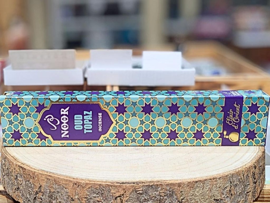 Vonné tyčinky Noor Oud – Oud Topaz v sobě nesou vůni oudu neboli agarového dřeva, které je po staletí ceněné jako jedna z nejvzácnějších vonných surovin světa. Po zapálení se do prostoru postupně uvolní dřevitá, jemně pryskyřičná vůně s lehce nasládlým orientálním nádechem, která působí klidně, uhlazeně a příjemně vyváženě.